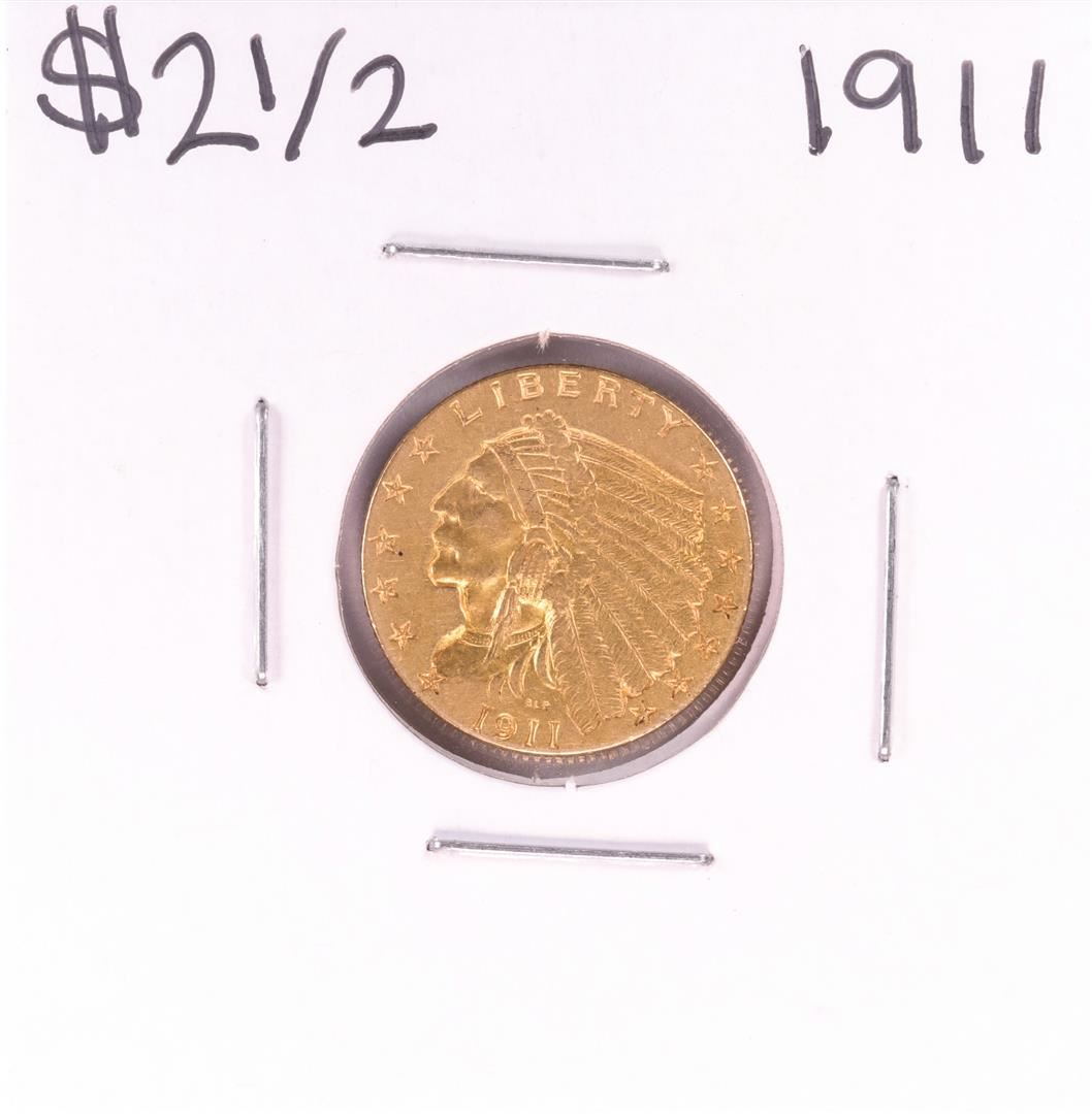 One 1911 $2 1/2 Indian Head Quarter Eagle Gold Coin.