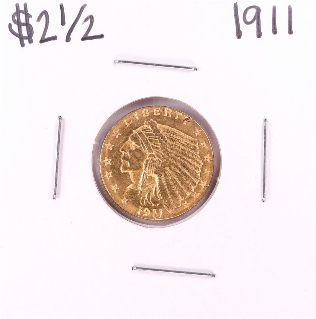 One 1911 $2 1/2 Indian Head Quarter Eagle Gold Coin.