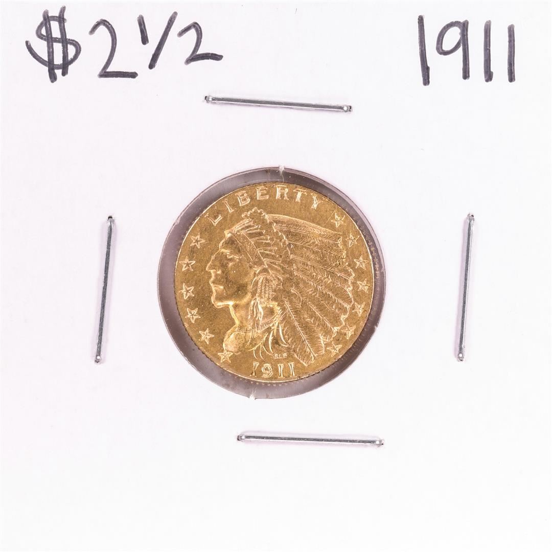 One 1911 $2 1/2 Indian Head Quarter Eagle Gold Coin.