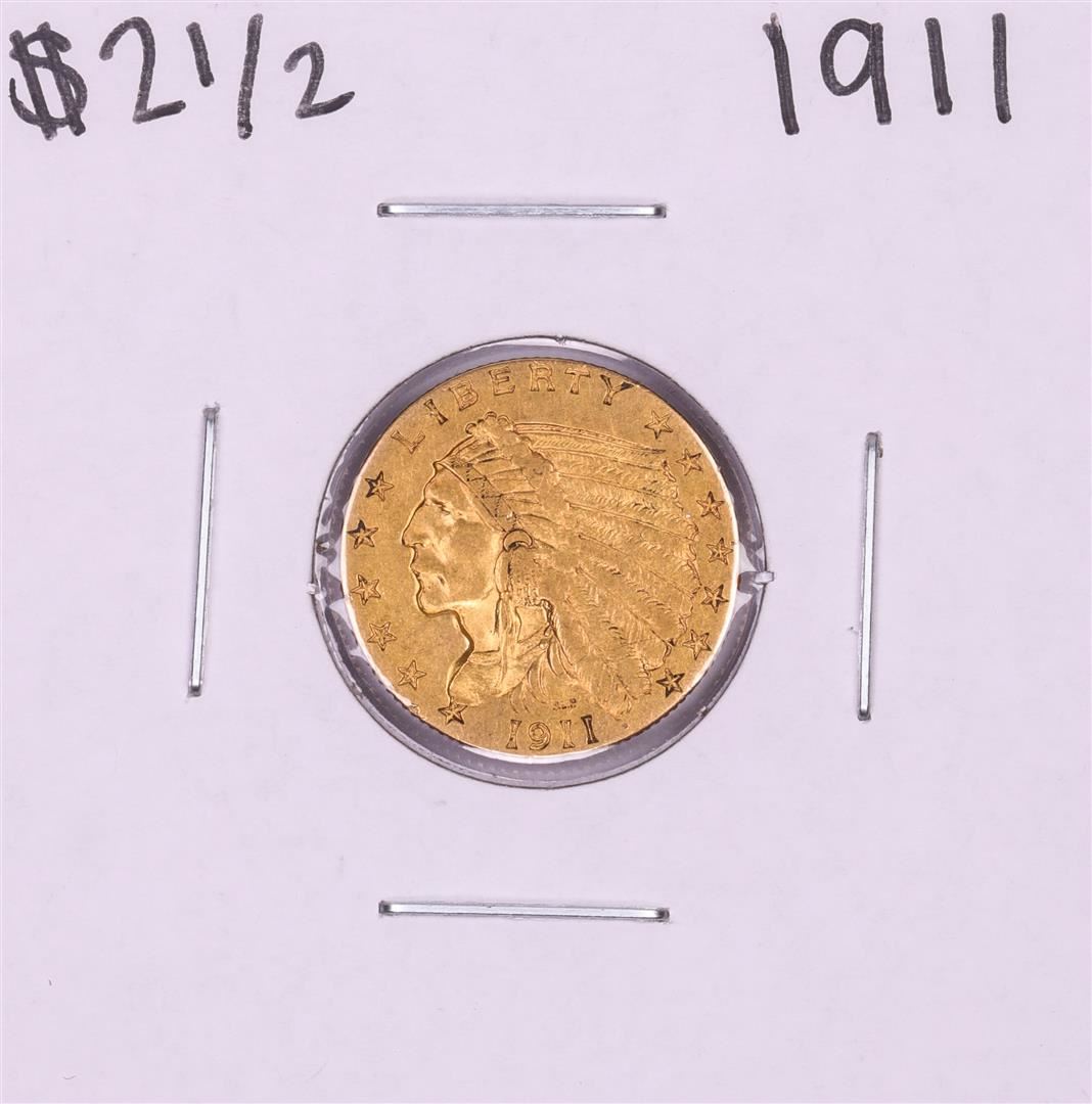 One 1911 $2 1/2 Indian Head Quarter Eagle Gold Coin.