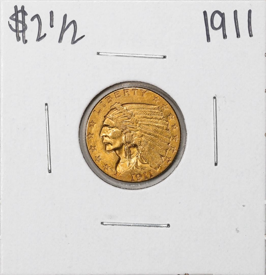 One 1911 $2 1/2 Indian Head Quarter Eagle Gold Coin.