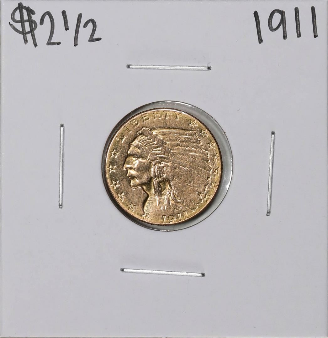 One 1911 $2 1/2 Indian Head Quarter Eagle Gold Coin.