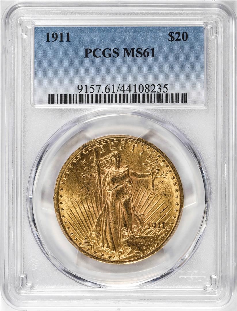 One 1911 $20 St Gaudens Double Eagle Gold Coin PCGS MS61. PCGS Graded.
