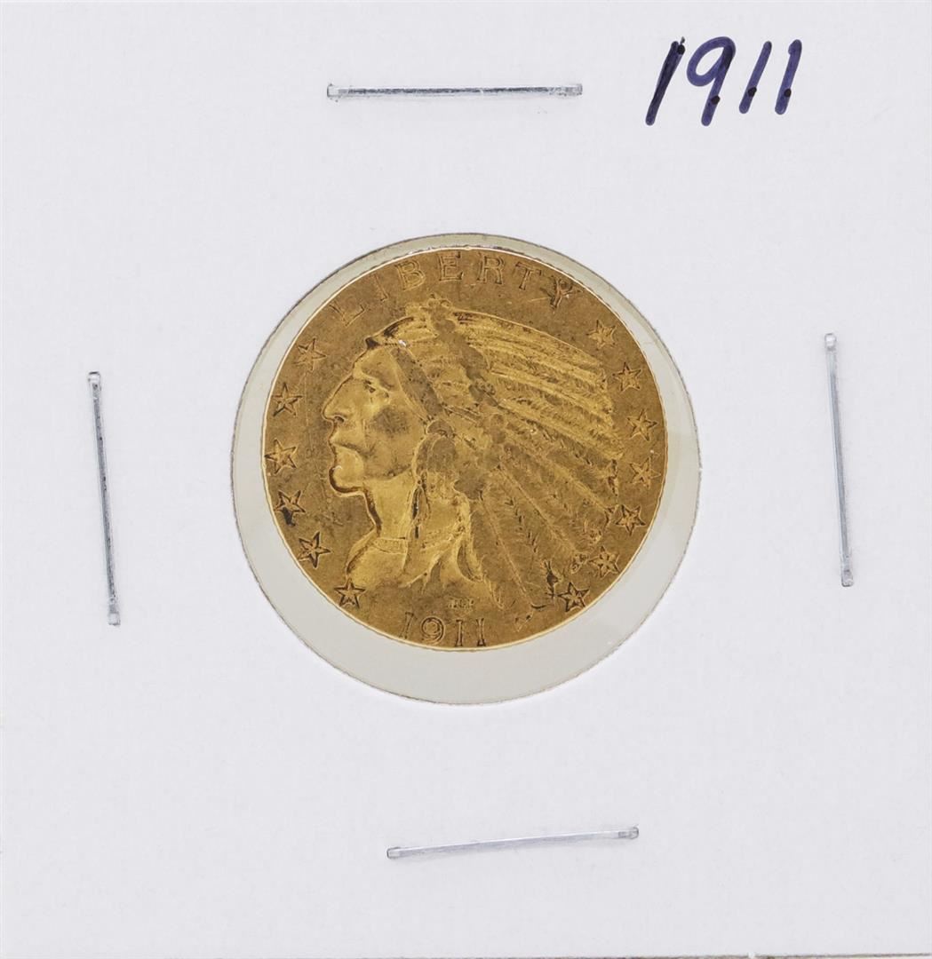 One 1911 $5 Indian Head Half Eagle Gold Coin.