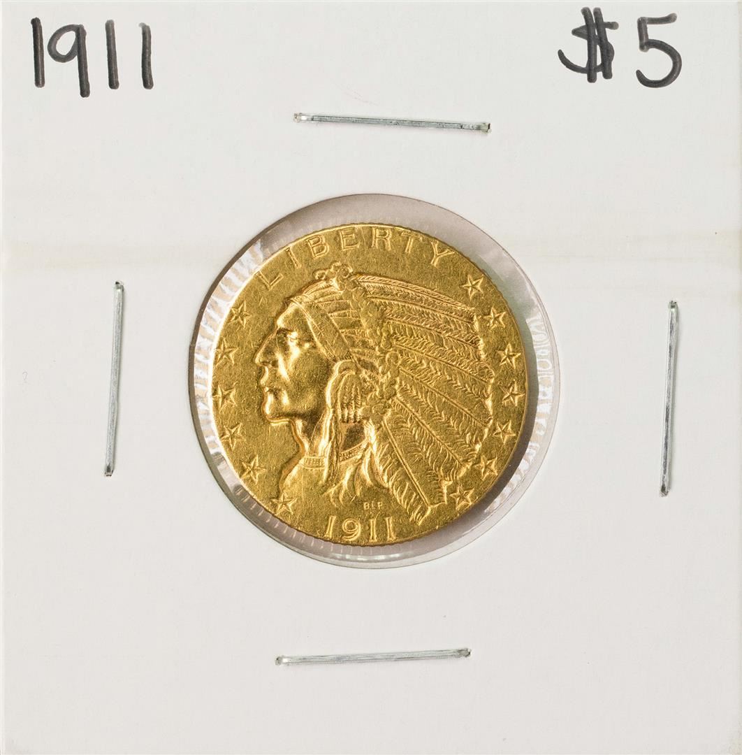 One 1911 $5 Indian Head Half Eagle Gold Coin.