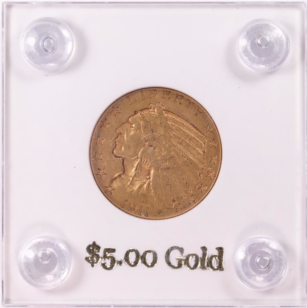 One 1911 $5 Indian Head Half Eagle Gold Coin.