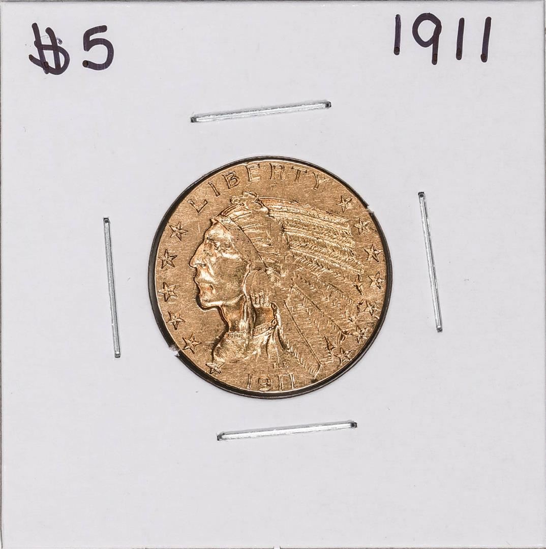 One 1911 $5 Indian Head Half Eagle Gold Coin.