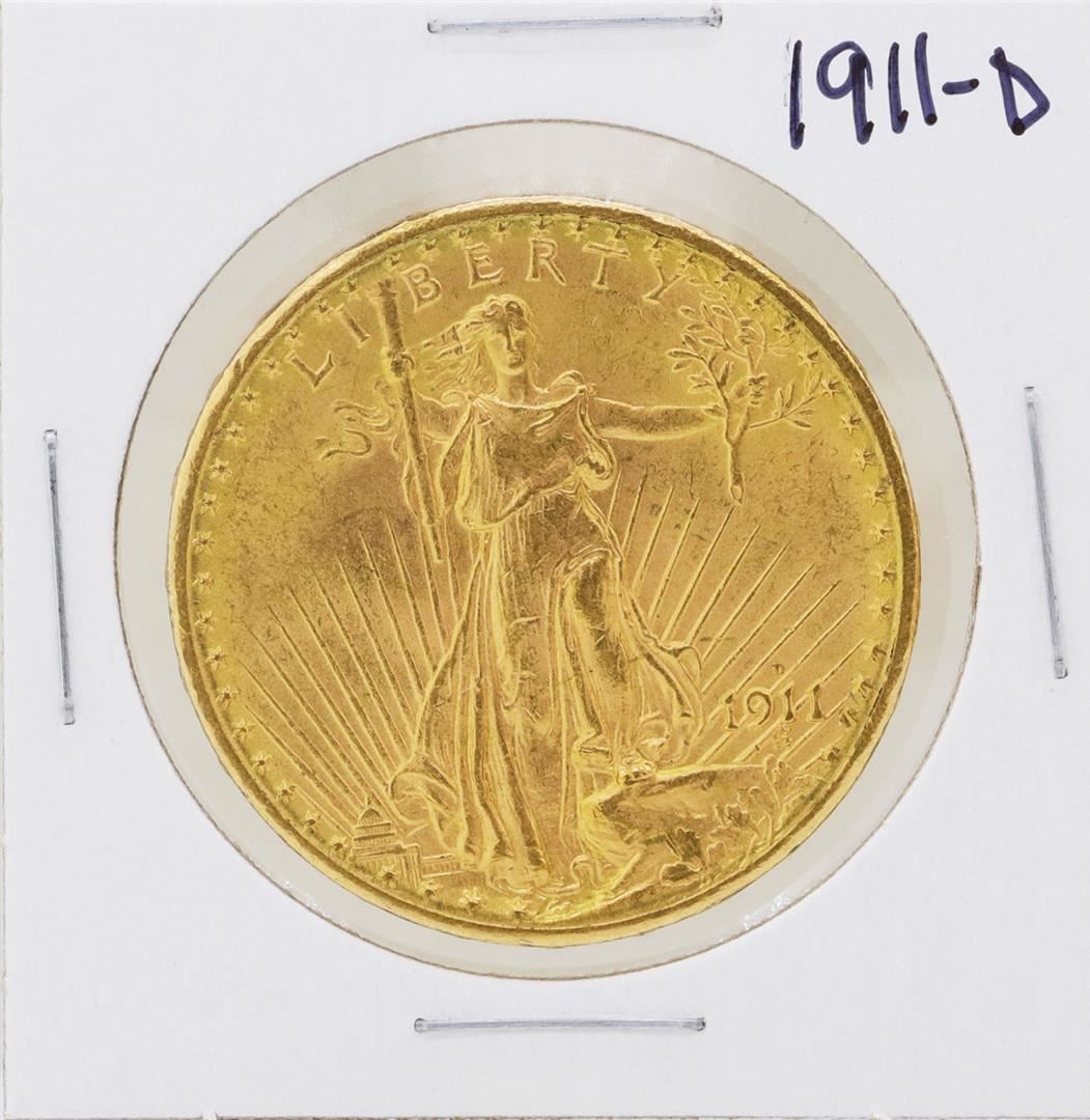 One 1911-D $20 St. Gaudens Double Eagle Gold Coin.