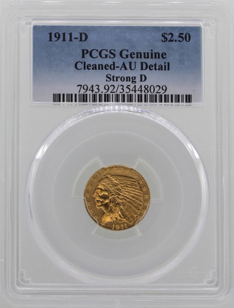 One 1911-D Strong D $2 1/2 Indian Head Quarter Eagle Gold Coin PCGS AU Details. PCGS Graded.