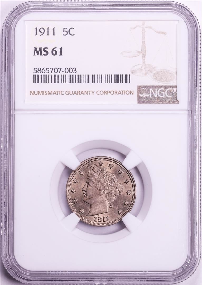 One 1911 Liberty V Nickel Coin NGC MS61. NGC Certified.