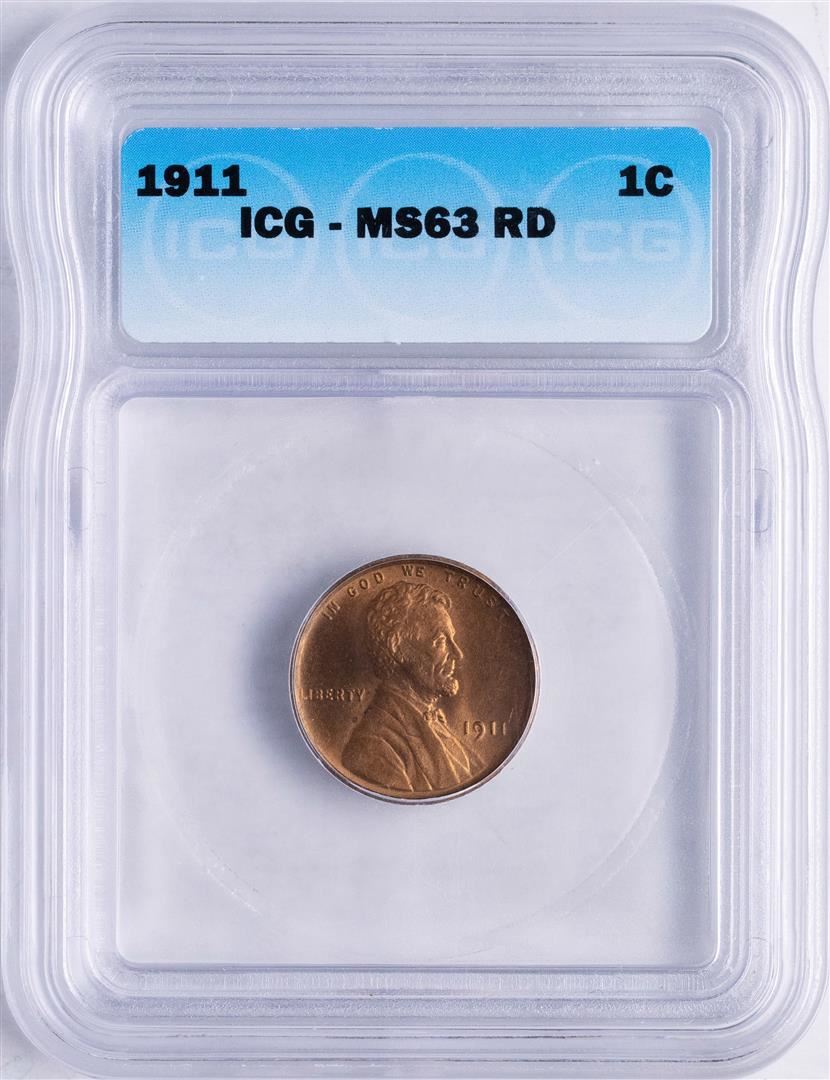 One 1911 Lincoln Wheat Cent Coin ICG MS63RD. ICG Certified.