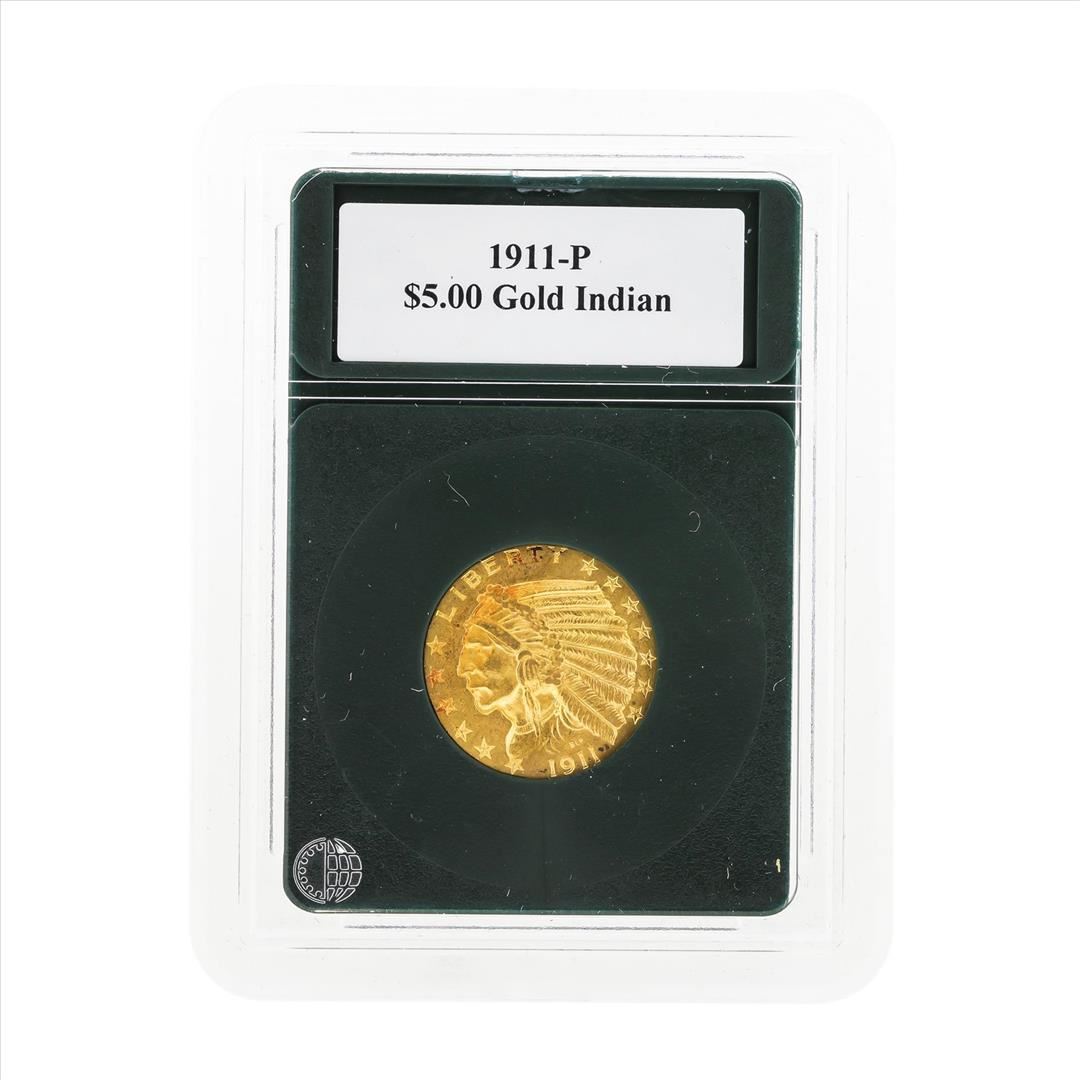 One 1911-P $5 Indian Head Half Eagle Gold Coin.
