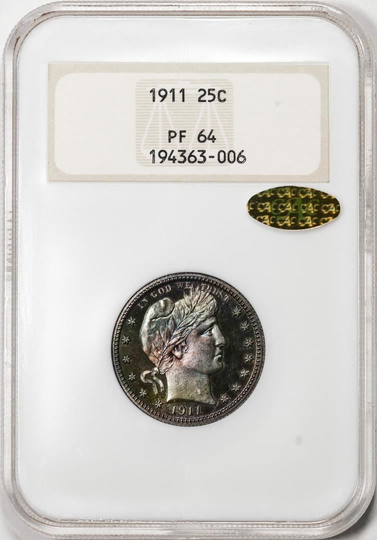 One 1911 Proof Barber Quarter Coin NGC PF64 GOLD CAC Old Fatty Holder Amazing Color!. NGC Certified.