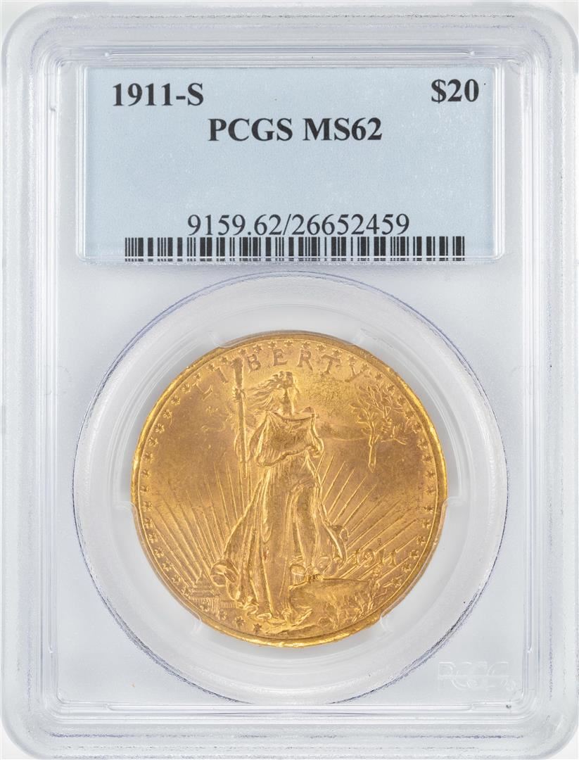 One 1911-S $20 Liberty Head Double Eagle Gold Coin PCGS MS62. PCGS Graded.