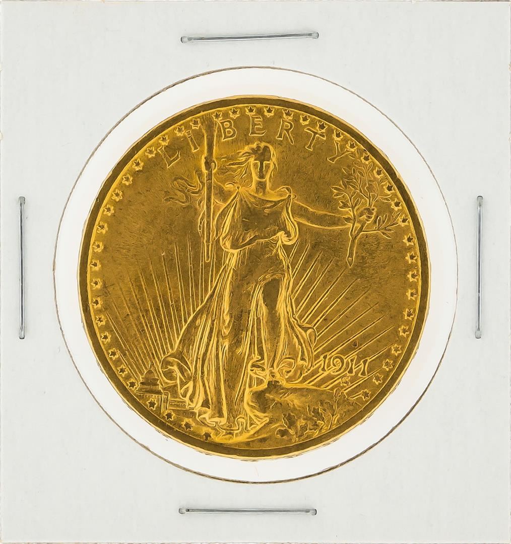 One 1911-S $20 St. Gaudens Double Eagle Gold Coin XF.