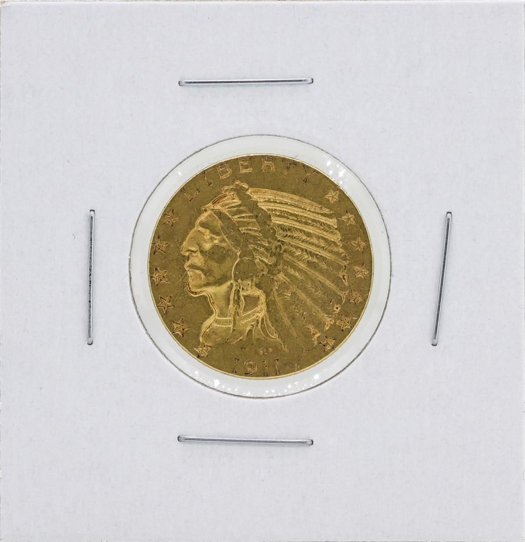 One 1911-S $5 Indian Head Half Eagle Gold Coin.
