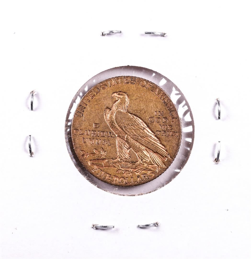One 1911-S $5 Indian Head Half Eagle Gold Coin.