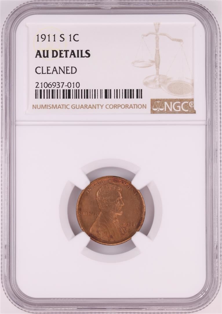 One 1911-S Lincoln Wheat Cent Coin NGC AU Details. NGC Certified.