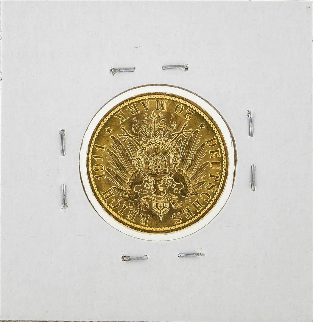 One 1911A Germany 20 Mark Gold Coin.