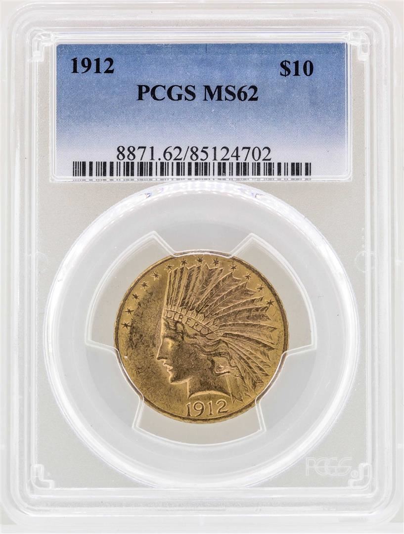 One 1912 $10 Indian Head Eagle Gold Coin PCGS MS62. PCGS Graded.
