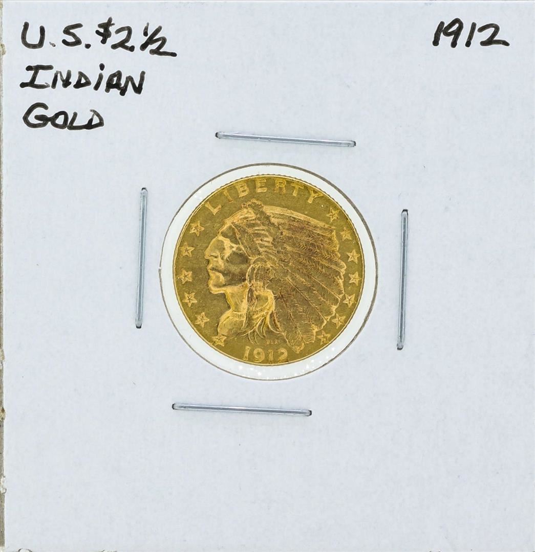 One 1912 $2 1/2 Indian Head Quarter Eagle Gold Coin.
