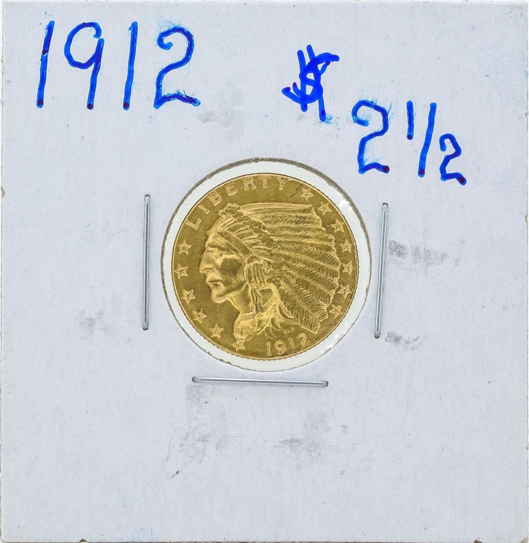 One 1912 $2 1/2 Indian Head Quarter Eagle Gold Coin.
