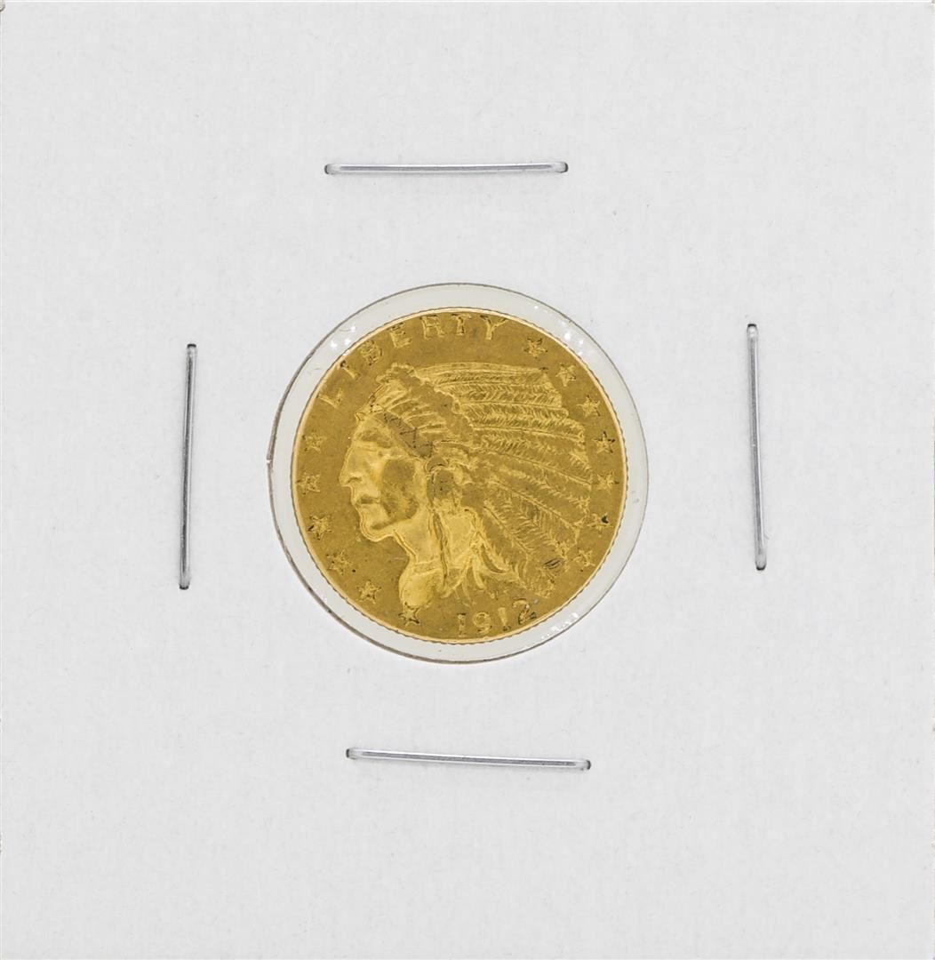 One 1912 $2 1/2 Indian Head Quarter Eagle Gold Coin.