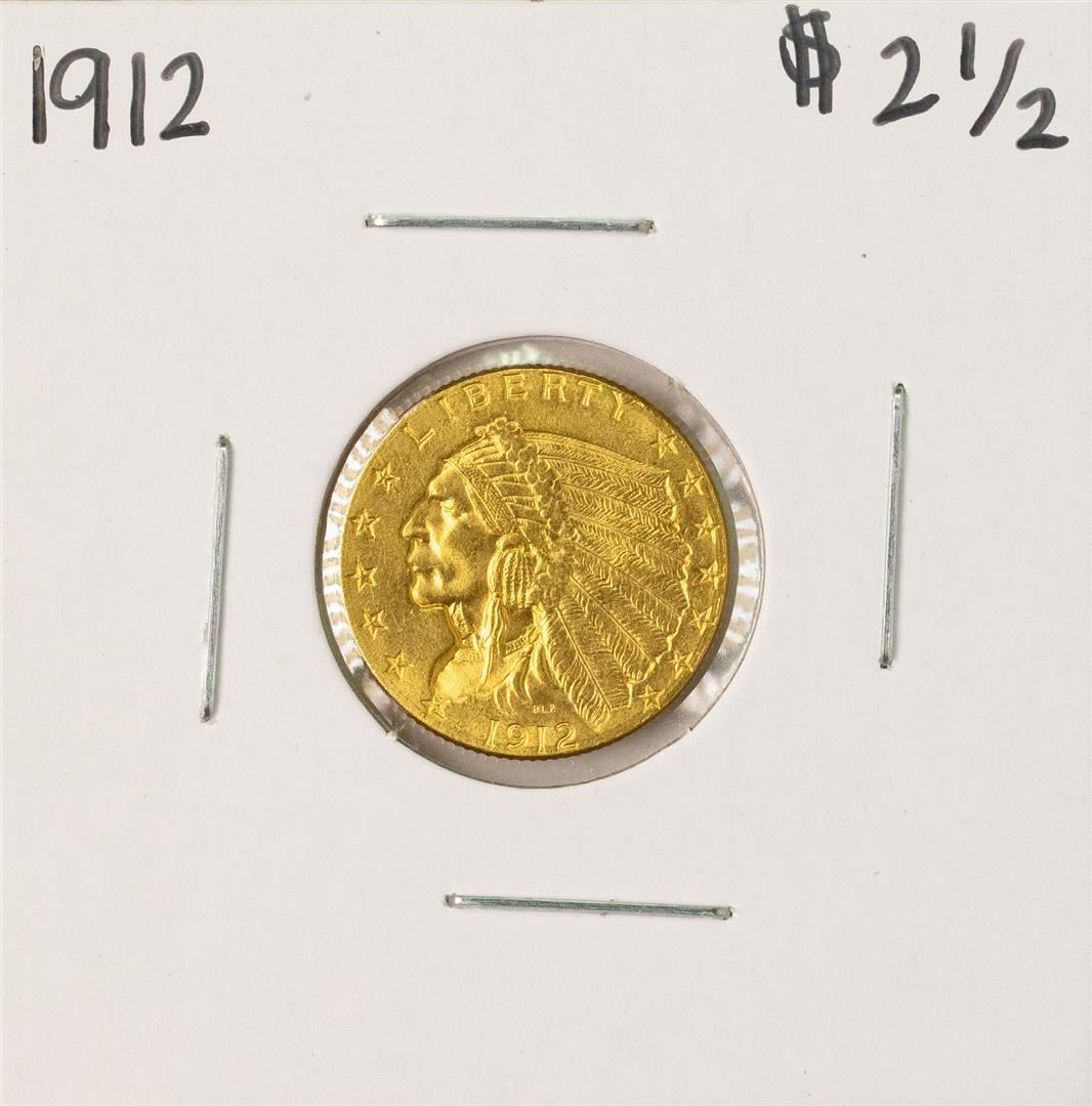 One 1912 $2 1/2 Indian Head Quarter Eagle Gold Coin.