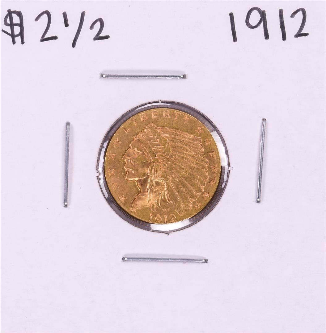 One 1912 $2 1/2 Indian Head Quarter Eagle Gold Coin.