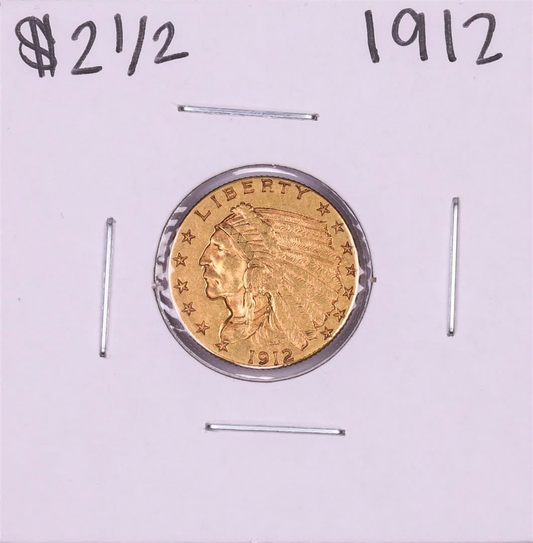 One 1912 $2 1/2 Indian Head Quarter Eagle Gold Coin.