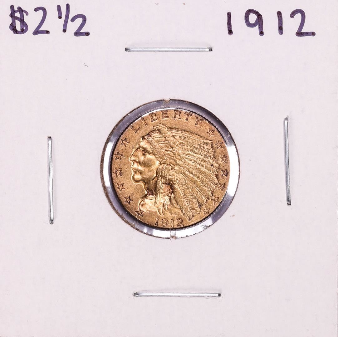 One 1912 $2 1/2 Indian Head Quarter Eagle Gold Coin.