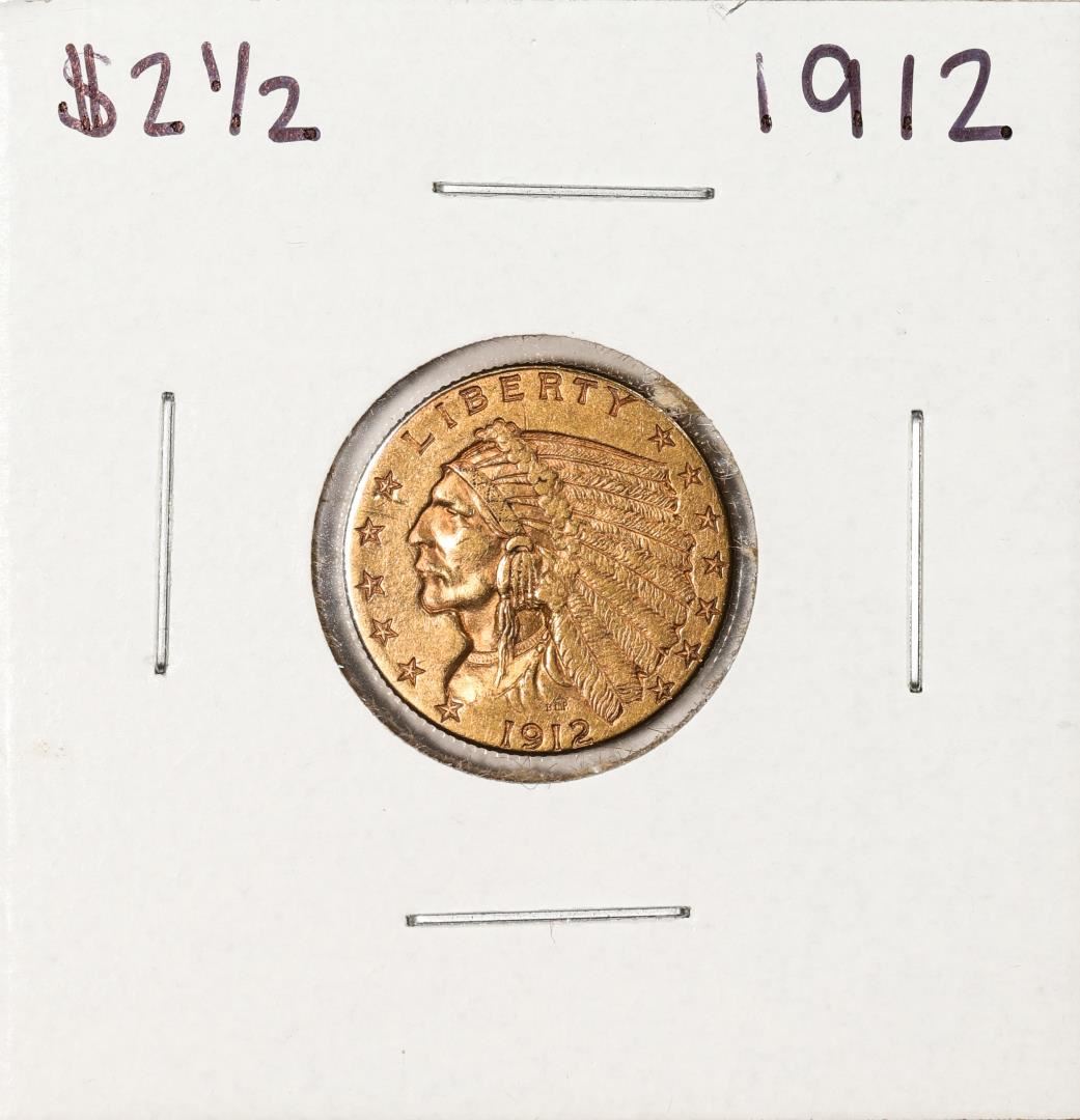 One 1912 $2 1/2 Indian Head Quarter Eagle Gold Coin.