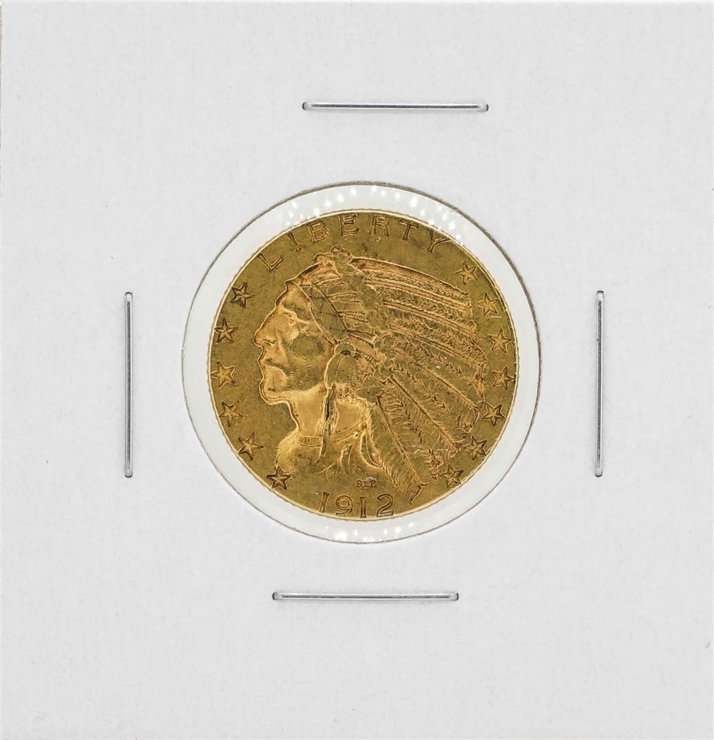 One 1912 $5 Indian Head Half Eagle Gold Coin.