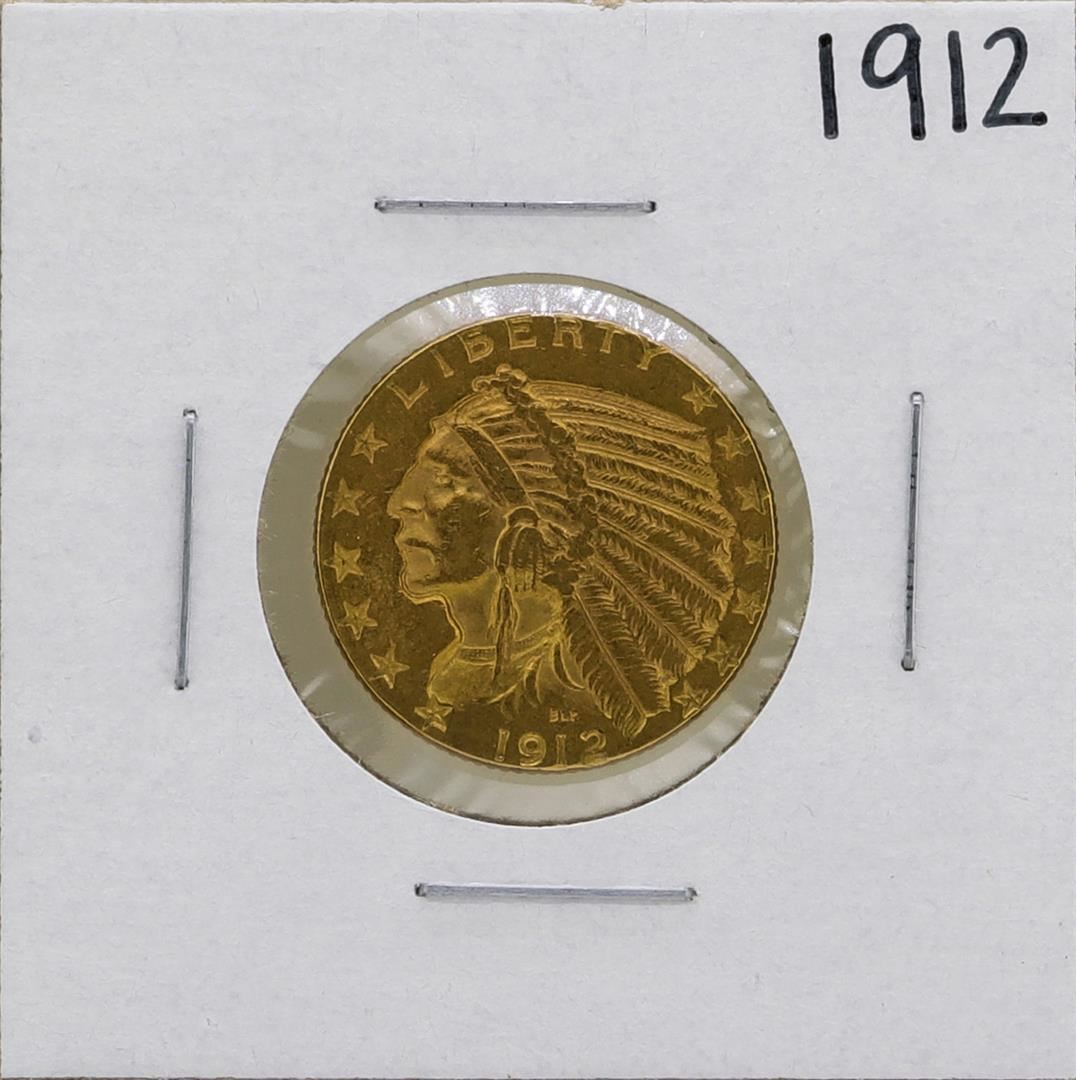 One 1912 $5 Indian Head Half Eagle Gold Coin.