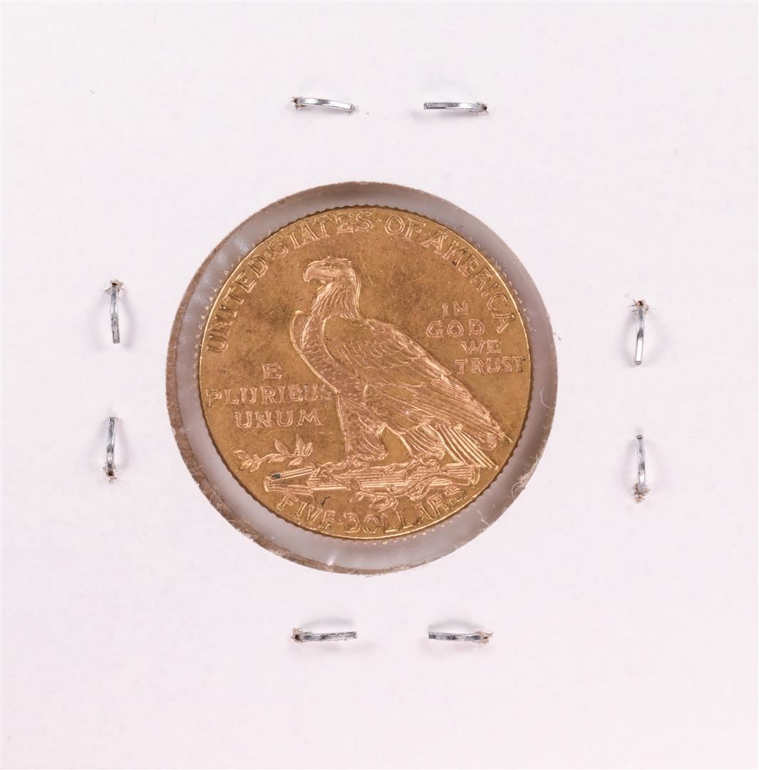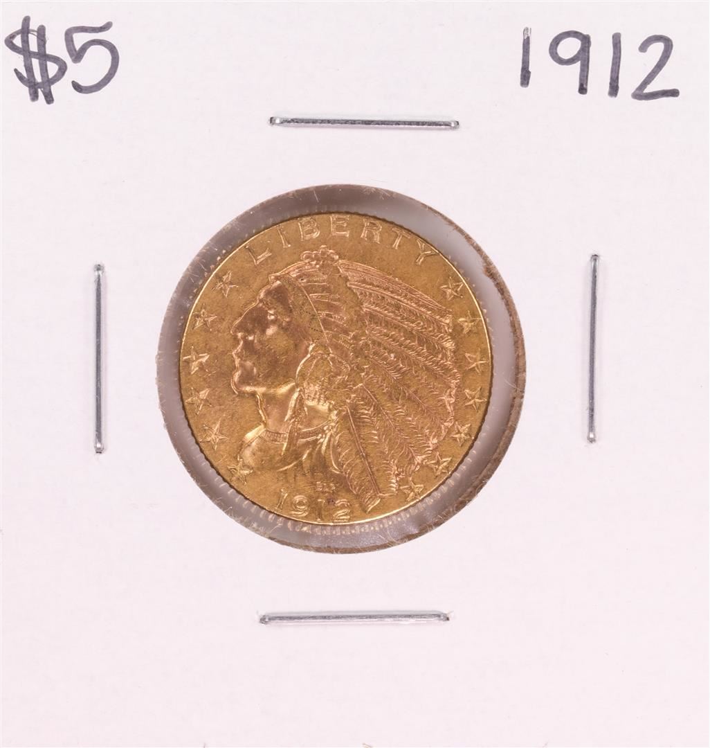 One 1912 $5 Indian Head Half Eagle Gold Coin.