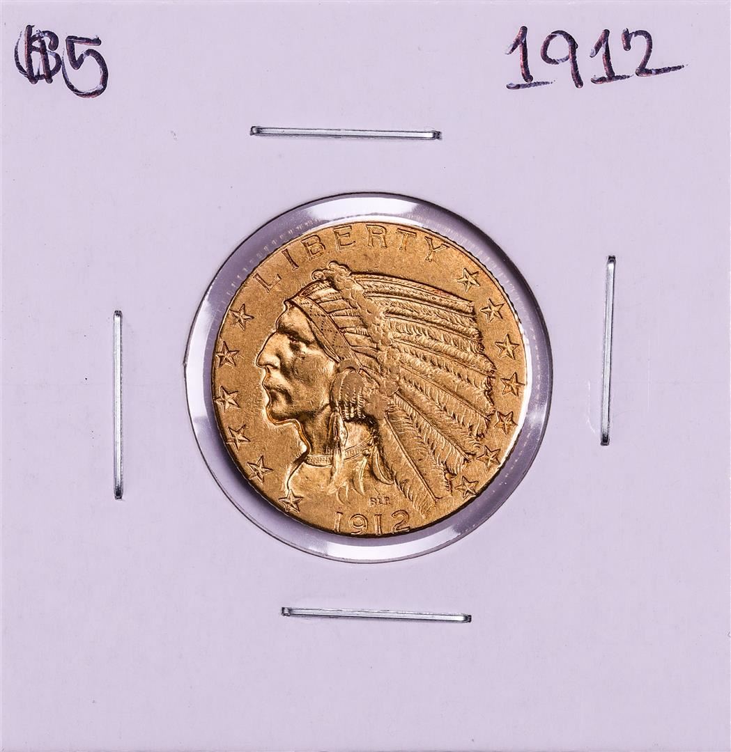 One 1912 $5 Indian Head Half Eagle Gold Coin.
