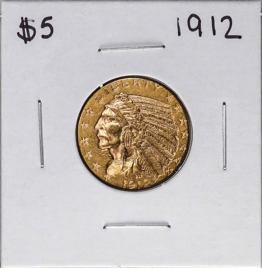 One 1912 $5 Indian Head Half Eagle Gold Coin.