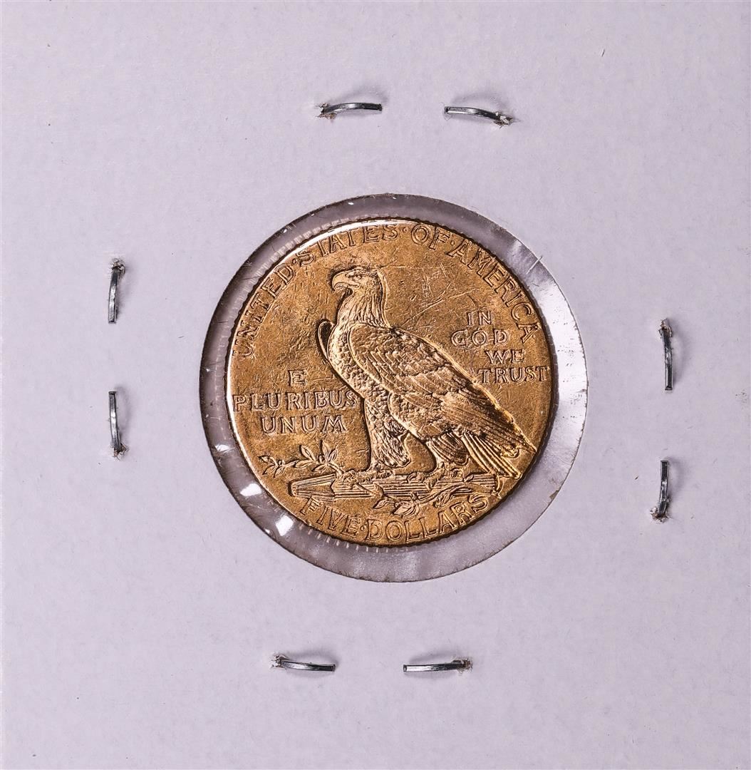 One 1912 $5 Indian Head Half Eagle Gold Coin.