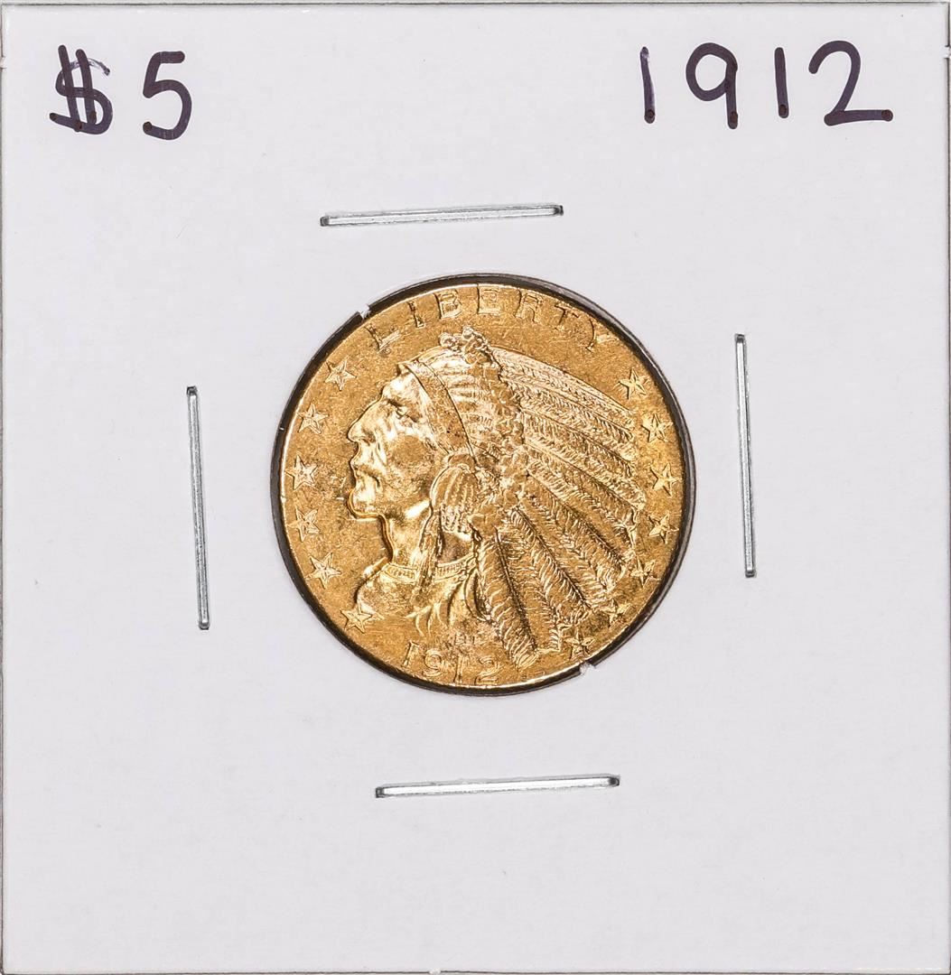 One 1912 $5 Indian Head Half Eagle Gold Coin.