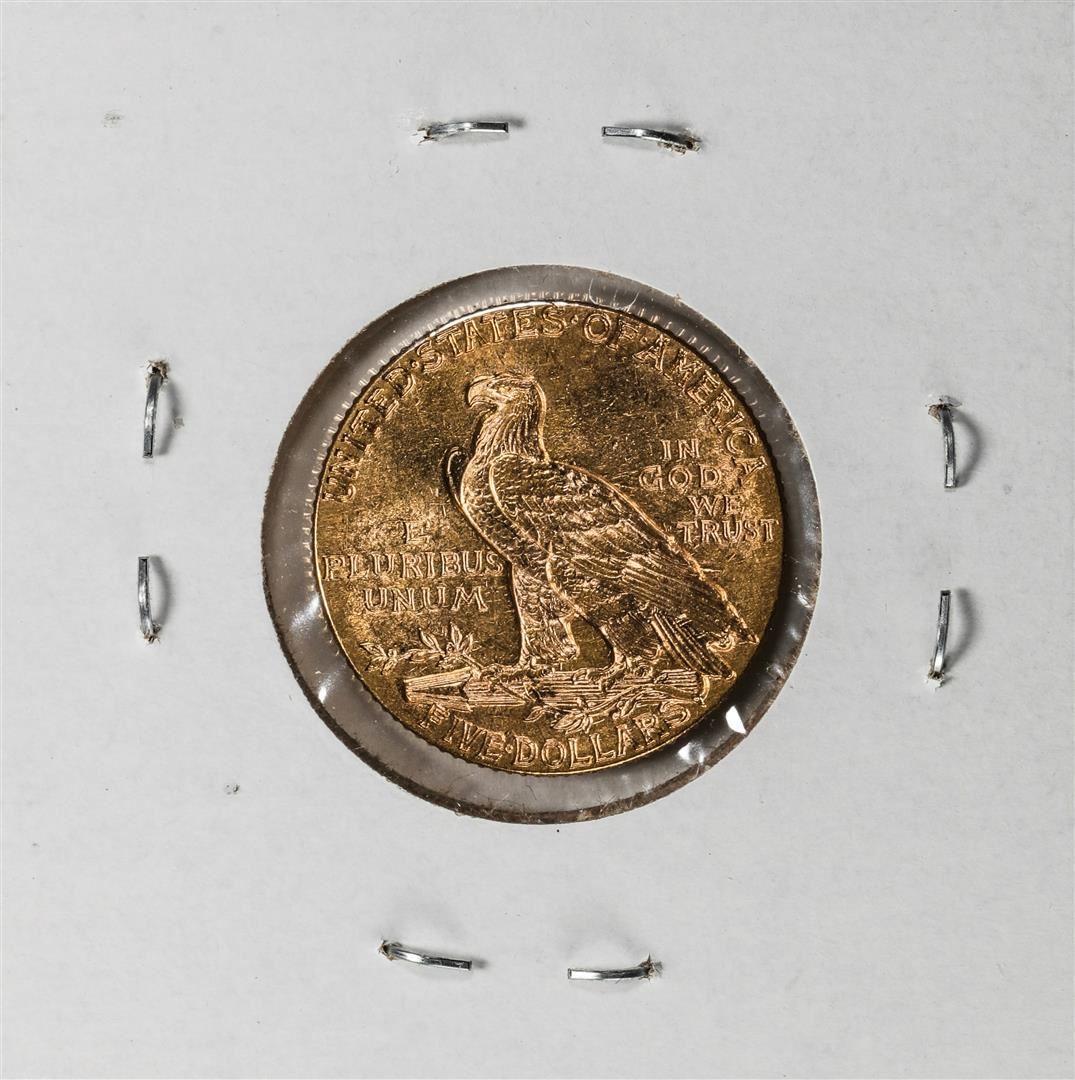 One 1912 $5 Indian Head Half Eagle Gold Coin.