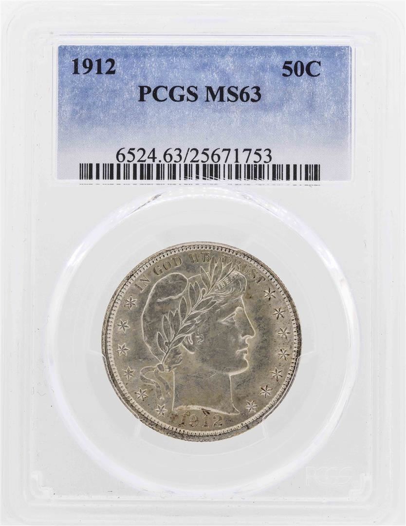 One 1912 Barber Half Dollar Coin PCGS MS63. PCGS Graded.