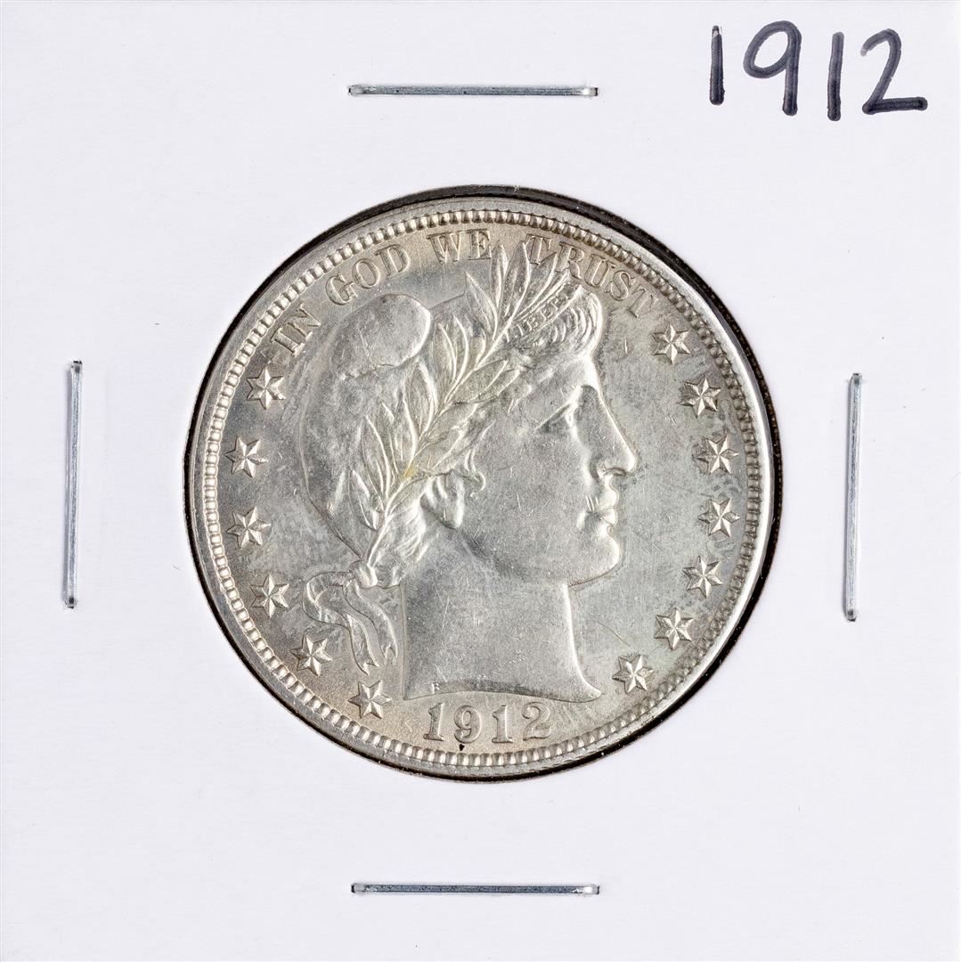 One 1912 Barber Half Dollar Coin.