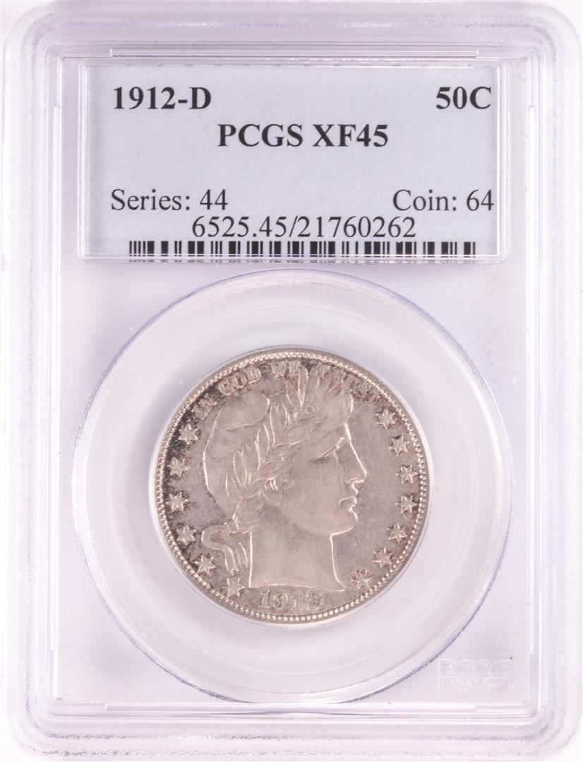 One 1912-D Barber Half Dollar Coin PCGS XF45. PCGS Graded.