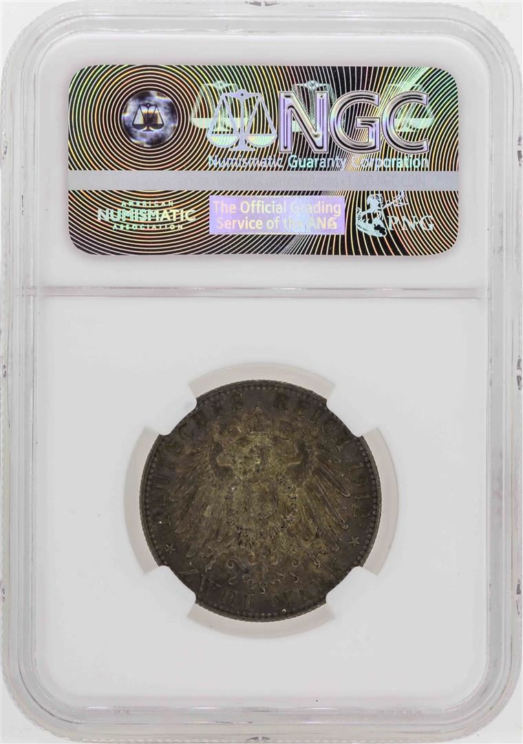 One 1912-J Germany Hamburg 2 Marks Silver Coin NGC AU58. NGC Certified.