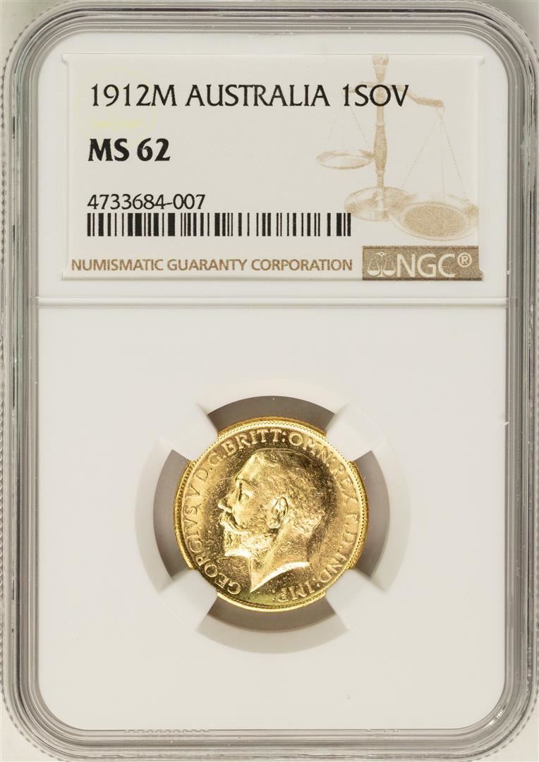 One 1912-M Australia Sovereign Gold Coin NGC MS62. NGC Certified.