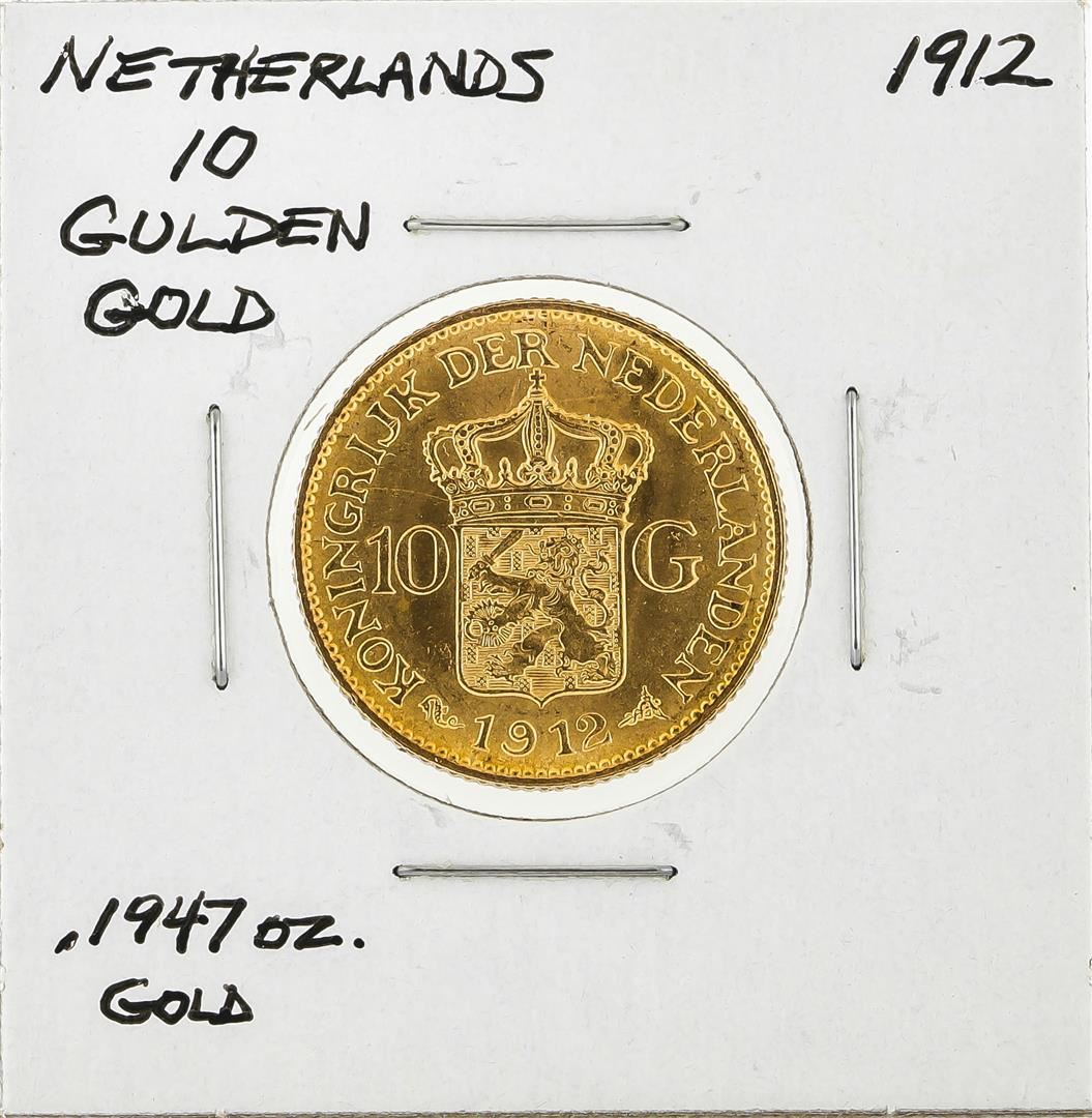 One 1912 Netherlands 10 Goulden Gold Coin.