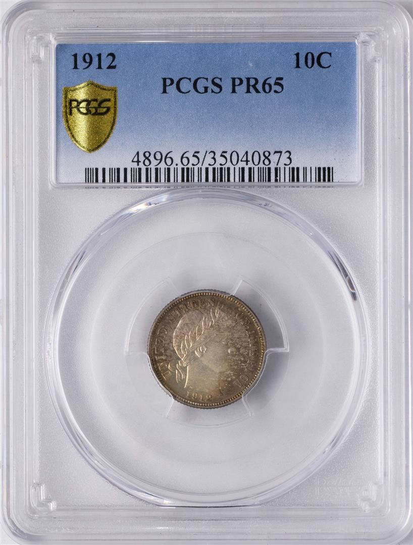 One 1912 Proof Barber Dime Coin PCGS PR65 Amazing Toning. PCGS Graded.