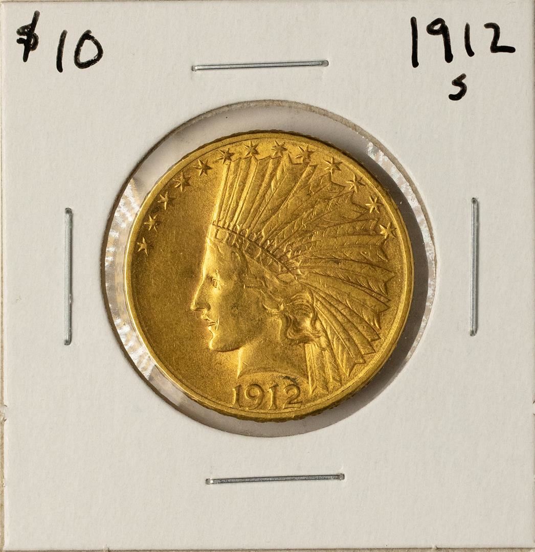 One 1912-S $10 Indian Head Eagle Gold Coin.