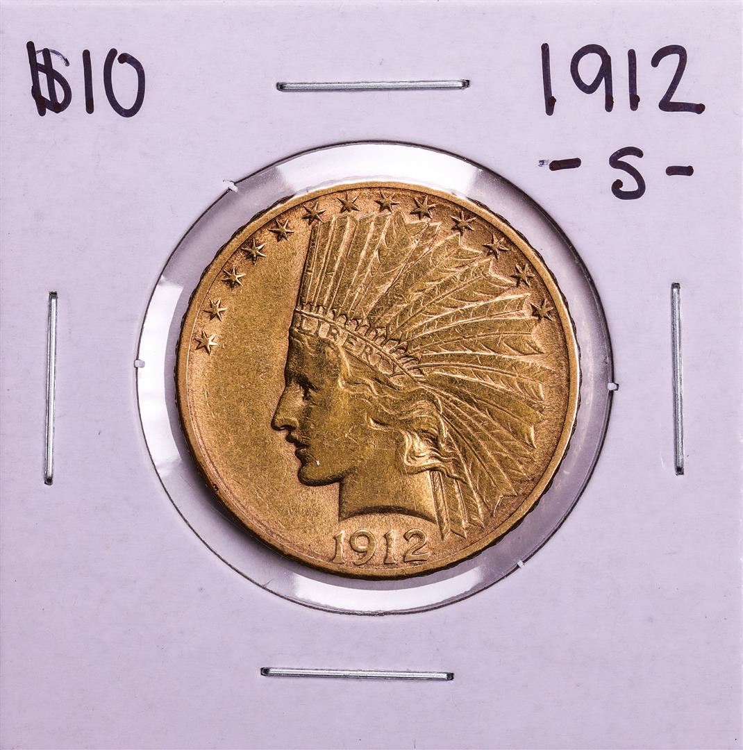 One 1912-S $10 Indian Head Eagle Gold Coin.