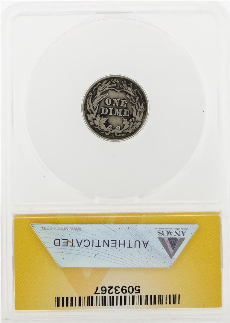 One 1912-S Barber Dime Coin Bent ANACS F12 Details. ANACS Certified.